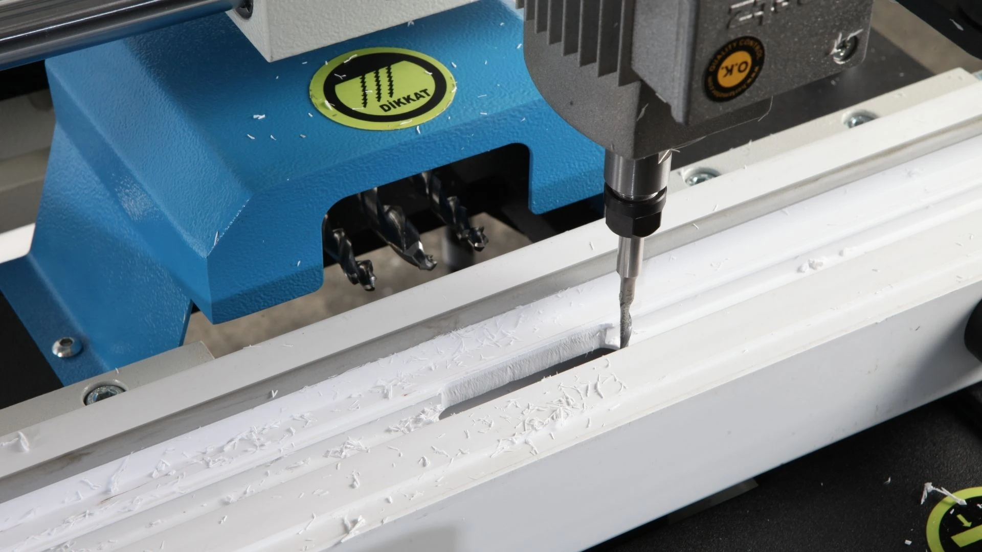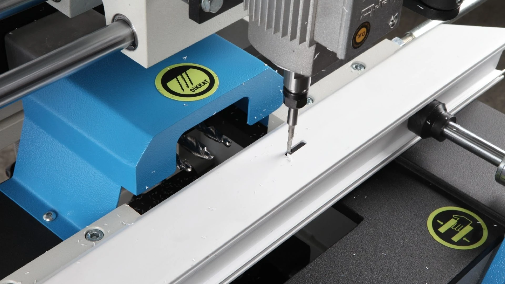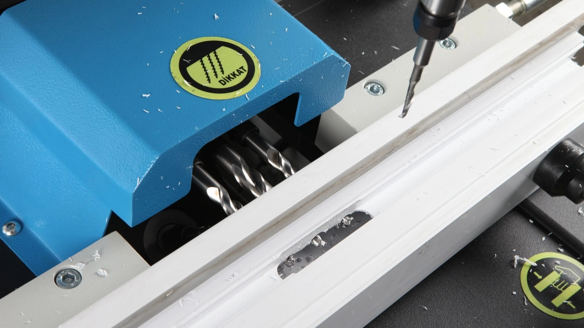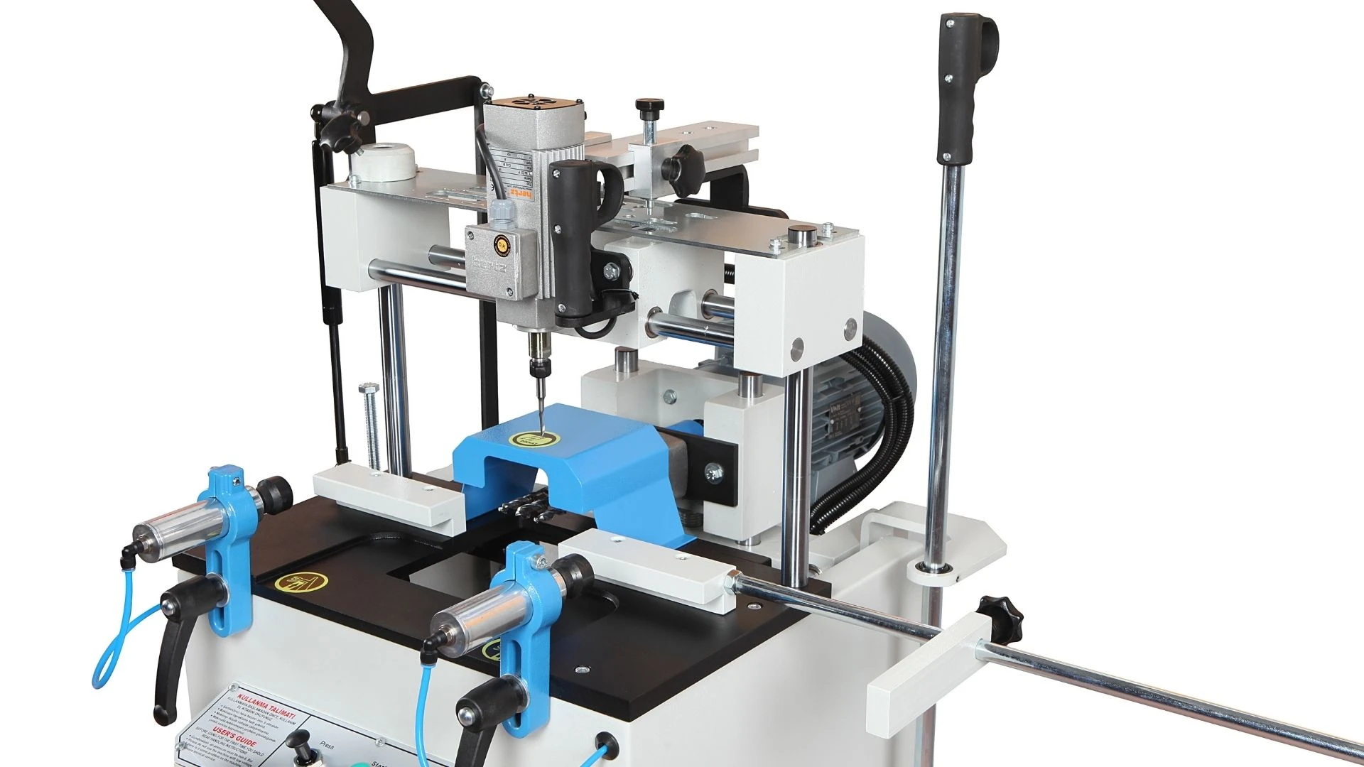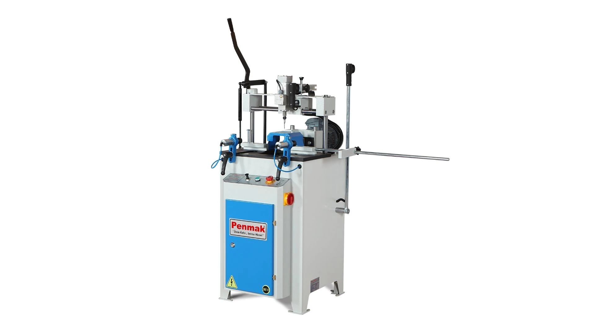 - PVC ve alüminyum profillerinin ispanyolet, barel kilit, pencere kol delikleri ve su tahliye deliklerini açmak için tasarlanmış bir freze makinesidir.