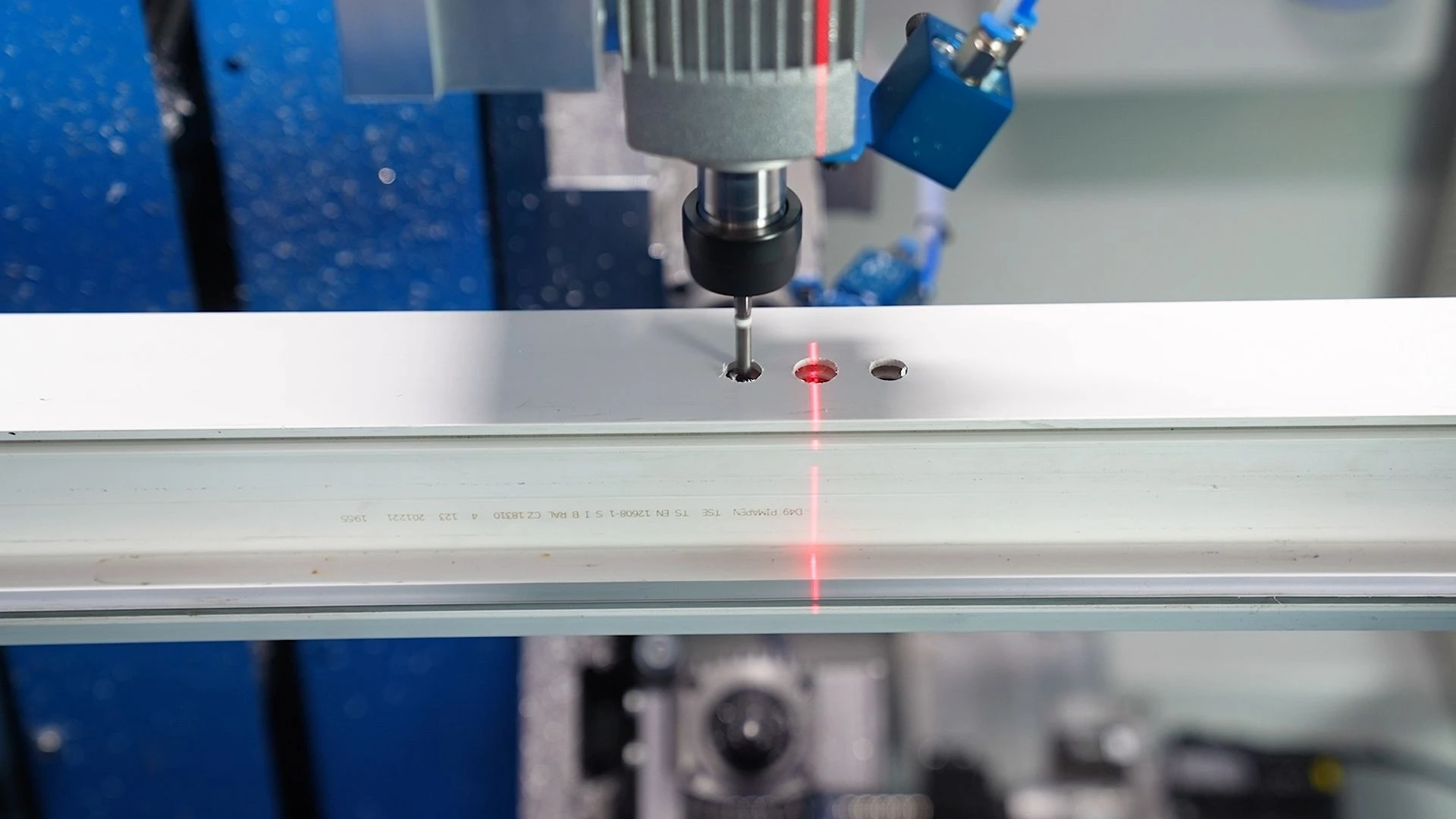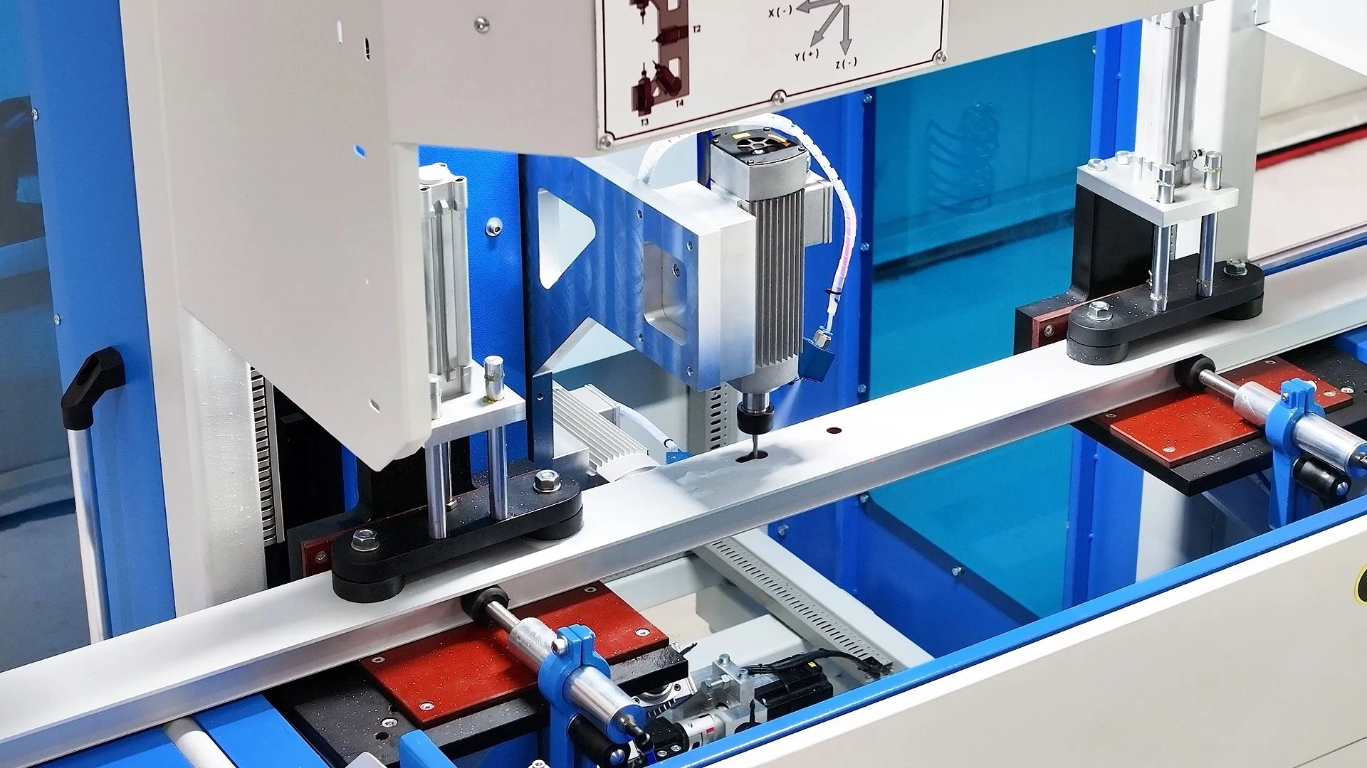 - Alüminyum ve PVC profillerinin barel kilit, üçlü kol yeri delme işlemlerini otomatik olarak yapan makinadır.
