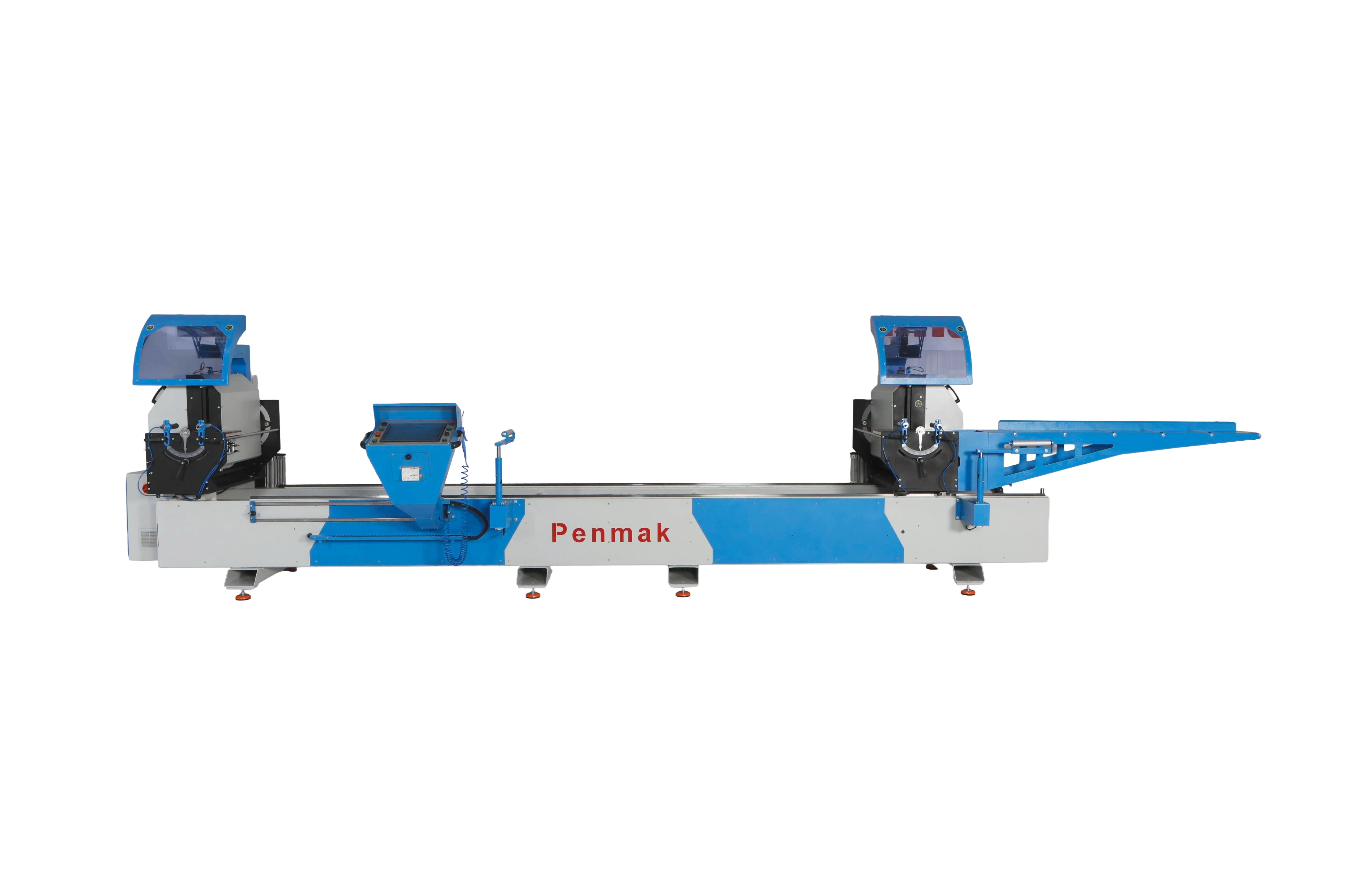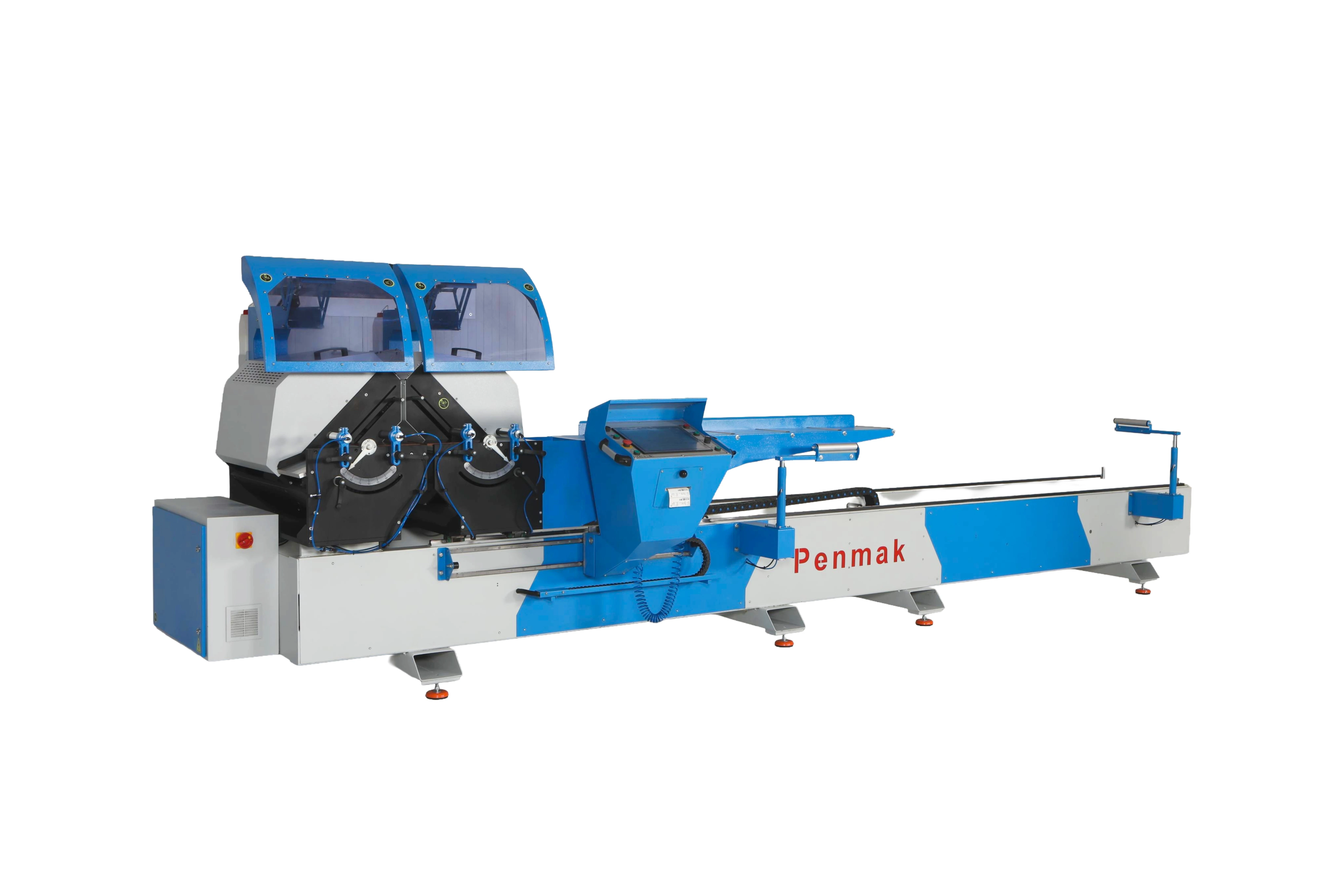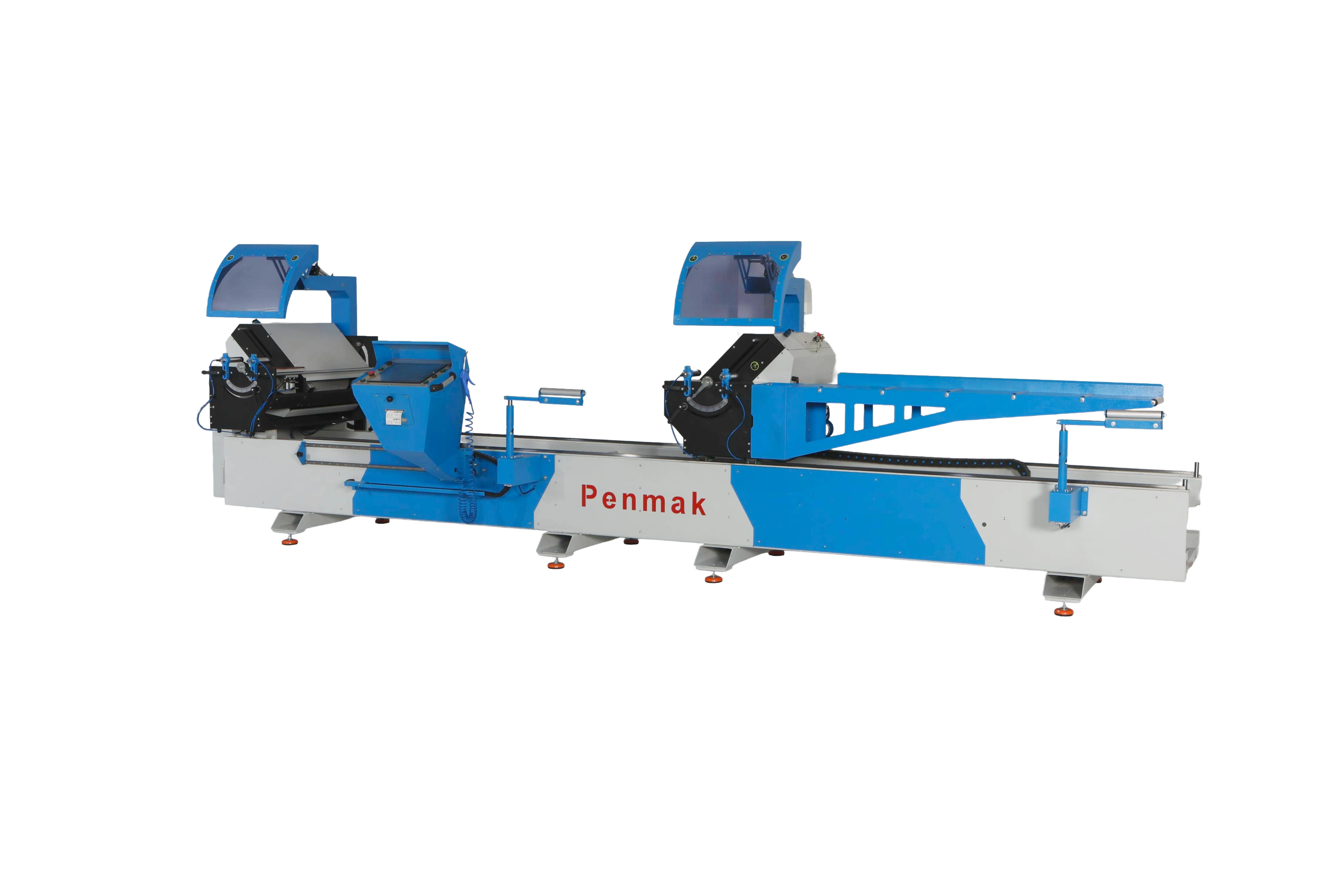 - Çift kafada minimum 550mm, maksimum 5400 mm kesim yapar. 5400 mm'den uzun ölçülerde sürücü sistemi sayesinde makine profili kendisi sürerek 9000 mm. ölçüye kadar kesim yapabilmektedir.