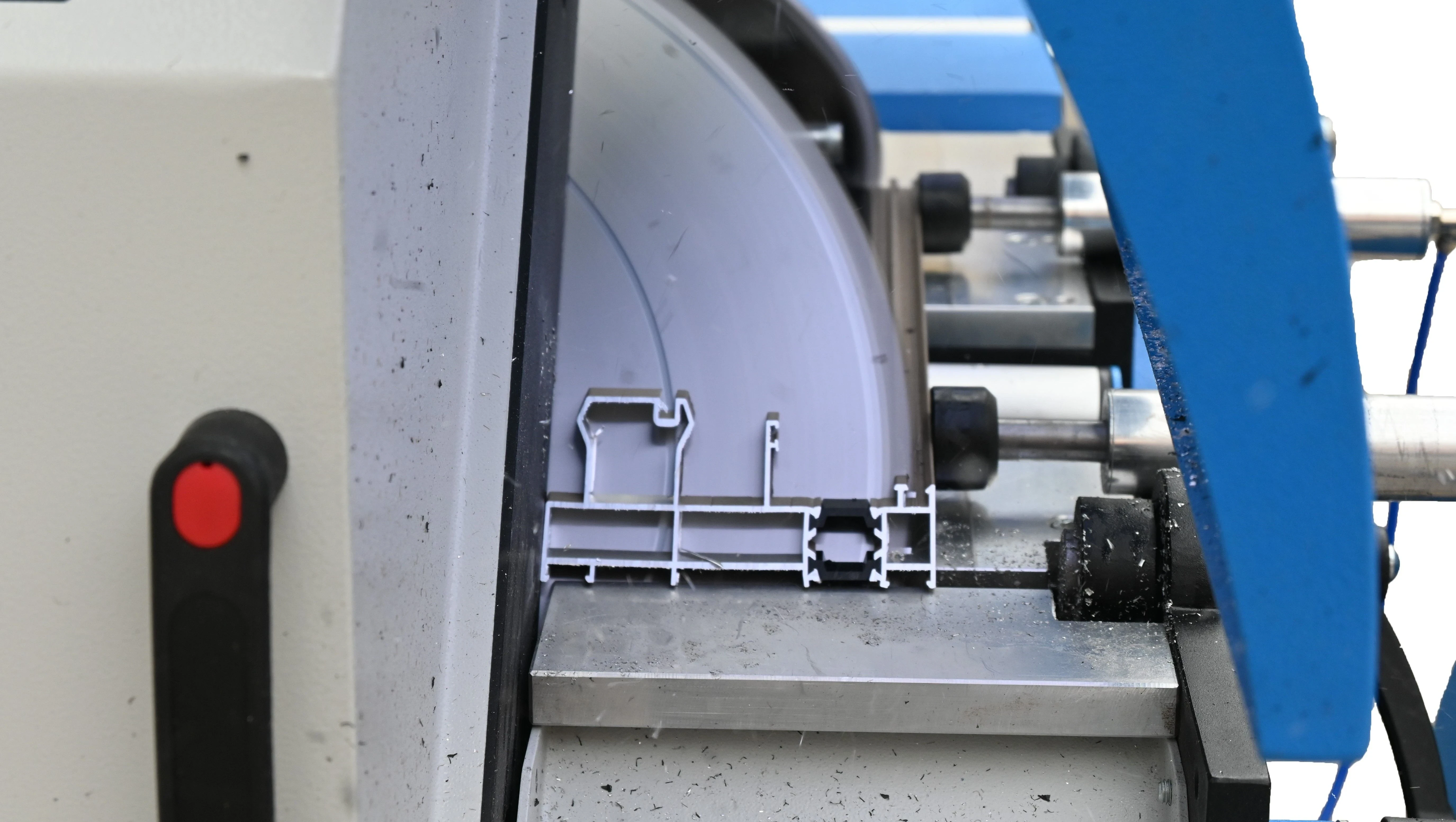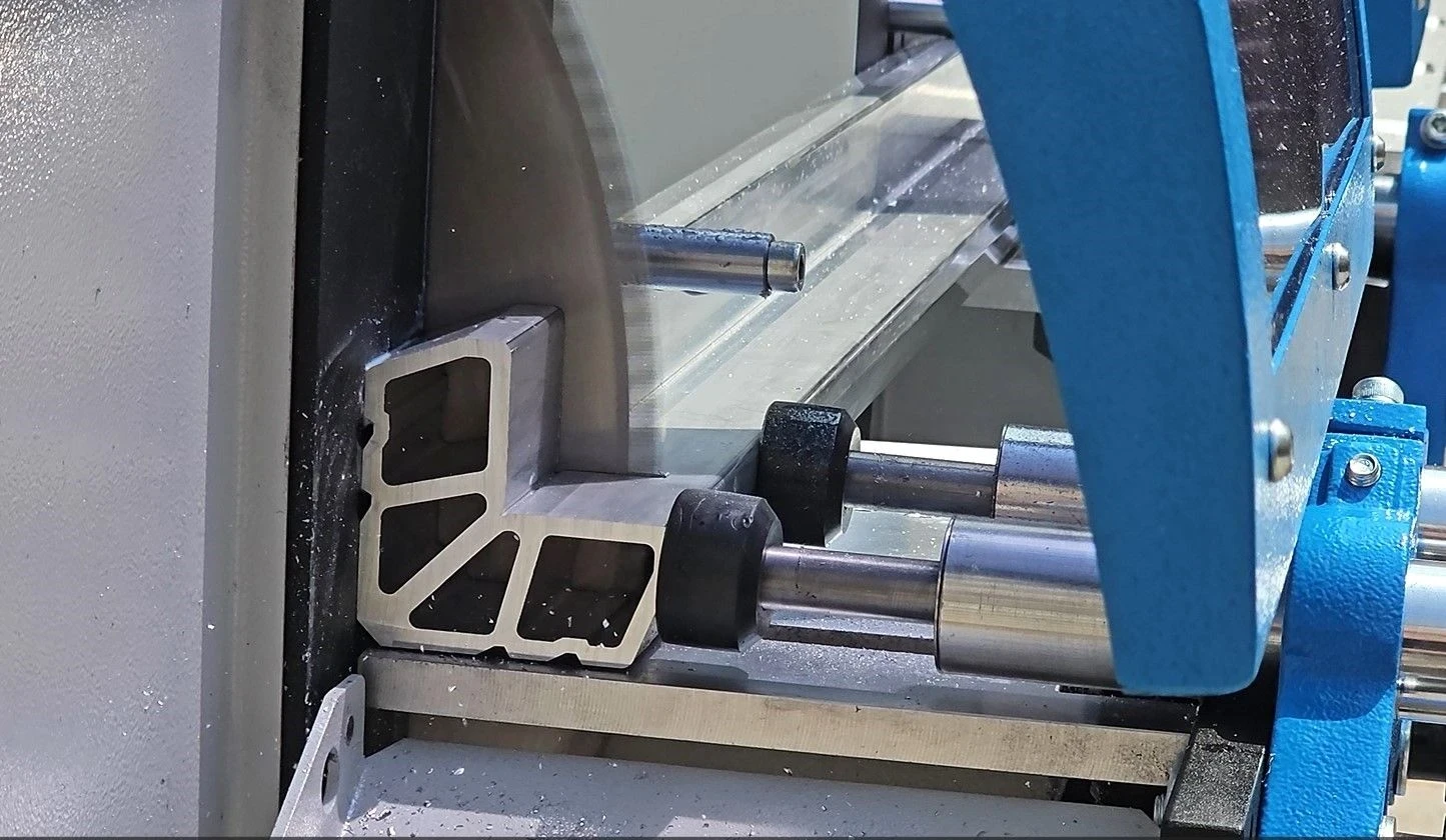 - PVC ve alüminyum profillerini 45 ~ 90 derece arasında hassas bir şekilde kesim yapar.